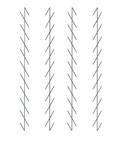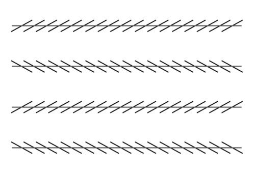 角度・方向の錯視の1つで、平行な線の上に斜めの短い線が描かれると、平行線が傾いて見える錯視。