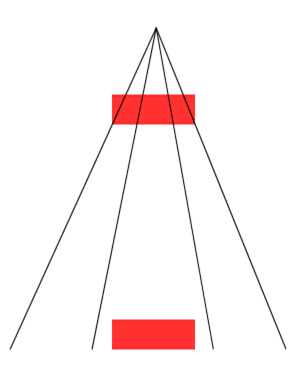 ポンゾ錯視(ポンゾ錯覚)とは、距離・大きさに関する錯視の1つで、平行する2本の線分の間に、収束する線分を配置することで、収束する線分の上側にある線分が、より長く見える現象を指します。