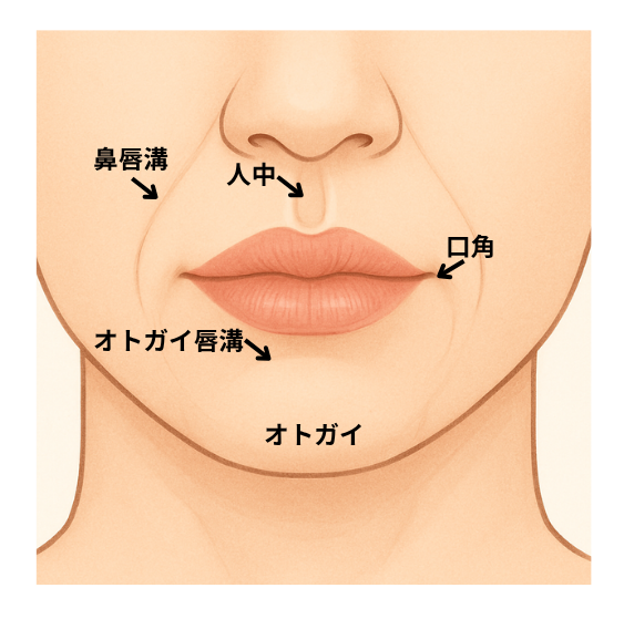 ほうれい線、鼻翼の付け根から口角に繋がるハの字の溝
