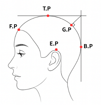 (2) 頭部の頂点で正中線上の点をゴールデンポイントという。